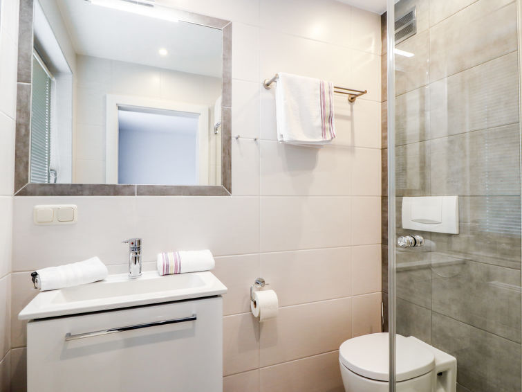 4-Zimmer-Wohnung 108 m2 im 1. Stock. Komfortabel und gemütlich eingerichtet: Eingang. 1 Zimmer mit 2 Betten (Länge 190 cm). 2 Doppelzimmer, jedes Zimmer mit Dusche/WC. Ausgang zum Balkon. Wohnküche (Backofen, Geschirrspüler, 4 Glaskeramikplatten, Toaster, Wasserkocher, Mikrowelle, Tiefkühler, elektrische Kaffeemaschine) mit Essecke und Sat-TV. Ausgang zum Balkon. Dusche/WC. Grosser Balkon. Balkonmöbel, Liegestühle. Sicht auf die Berge und die Landschaft. Zur Verfügung: Haartrockner. Internet (Wireless LAN, gratis). Bitte beachten: Nichtraucher-Unterkunft. Eigener Eingang, Rauchmelder, Feuerlöscher. 50416-0022-1417