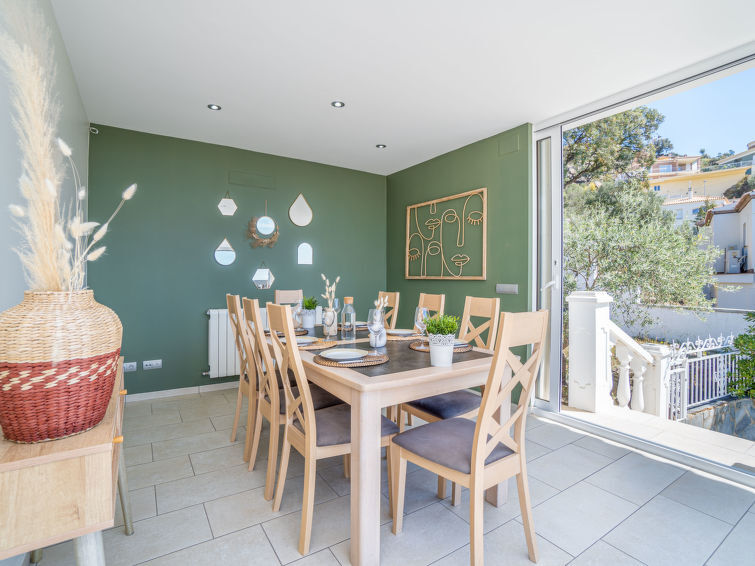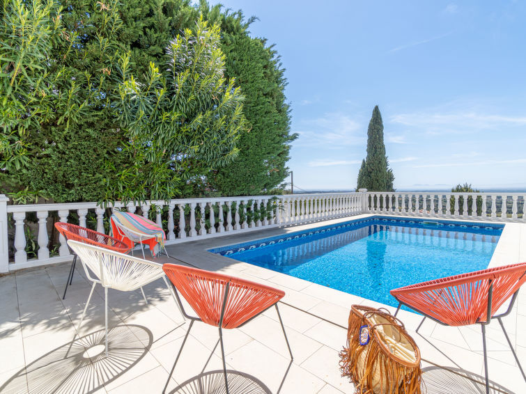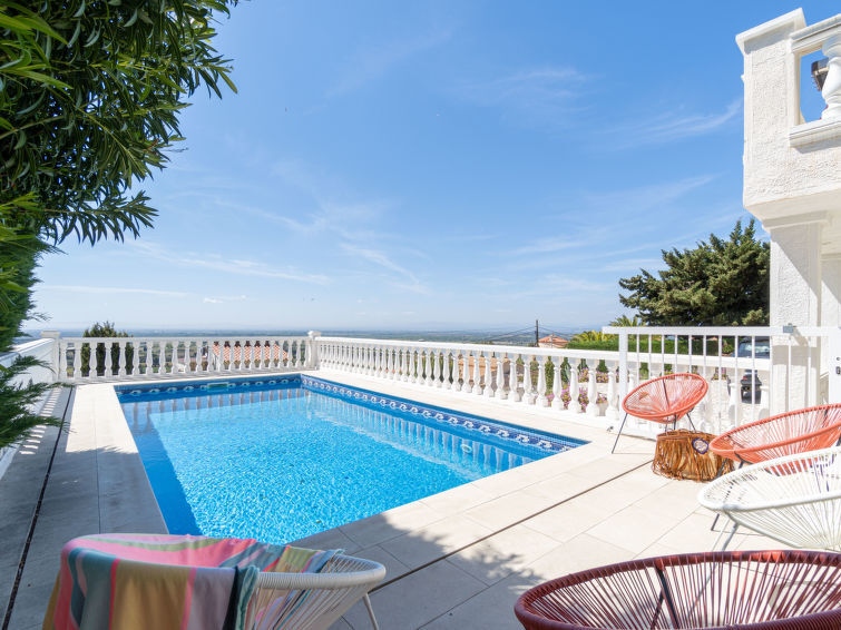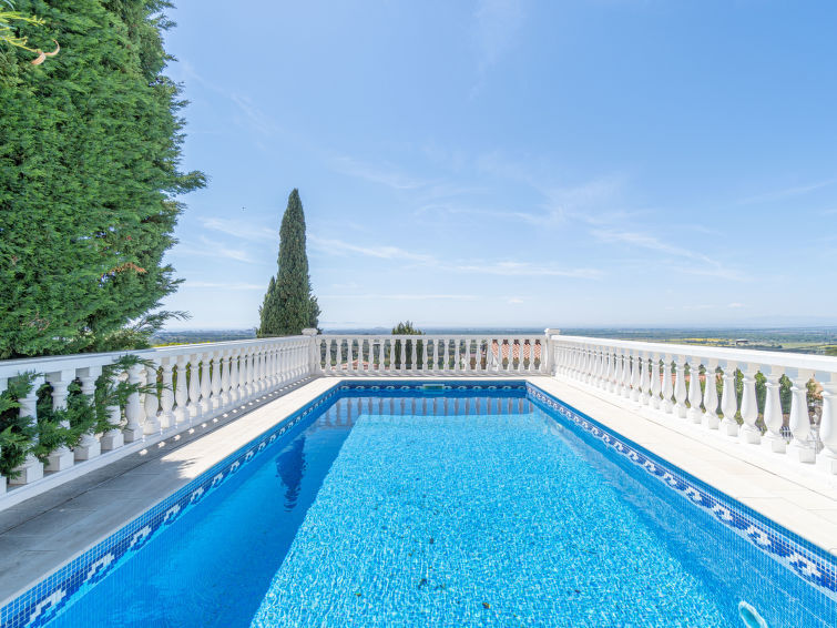 Grosse, moderne, gemütliche Villa "Panorama", auf 2 Stockwerken. Im Ort Palau Savardera, 8 km vom Zentrum von Roses, ruhige, sonnige Lage im Villenviertel, verkehrsberuhigte Zone, 7 km vom Meer, 7 km vom Strand, Richtung Süden. Zur Alleinbenutzung: grosser terrassierter Garten (eingezäunt) mit Pflanzen und Bäumen, Schwimmbad eckig (8 x 4 m, 100 - 200 cm tief, saisonale Verfügbarkeit: 01.Mai. - 30.Okt.) mit Innentreppe. Terrasse, Gartenmöbel, Grill, Parkplatz (für 3 Autos) auf dem Grundstück. Lebensmittelgeschäft 3 km, Supermarkt 3 km, Restaurant, Bar, Café 500 m, Bushaltestelle "Moventis estació bus Roses" 8.8 km, Bahnstation "Estación Tren Vilajuiga" 6 km, Sandstrand "Roses" 9 km. Sporthafen 9 km, Golfplatz (18 Loch) 12 km, Segelschule 9 km, Tennis 3 km, Reitstall 5 km. Nahe gelegene Sehenswürdigkeiten: Zona de padel con bar y restaurante 500 m, Parque Acuático Roses Aquabrava 3 km, Túnel del viento y Skydive Empuriabrava 12 km, Cadaqués 17 km, Museo Dalí Figueres 22 km, Castillo y festival de Perelada 15 km. Bitte beachten: Fahrzeug empfohlen. Jugendgruppen nur auf Anfrage. Die Schlüsselübergabe findet bei der Agentur Interhome in Empuriabrava statt.