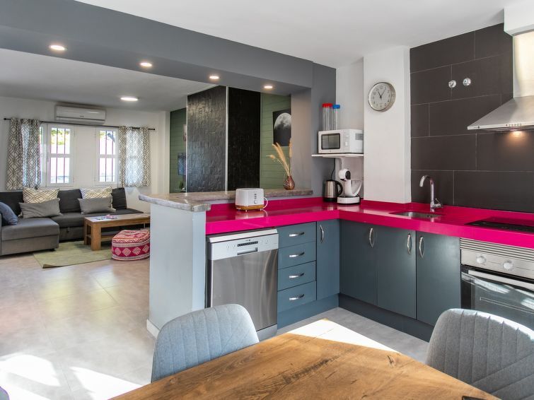 Chilches costa: Schönes, gemütliches Reihenhaus "Brisa del mar", auf 2 Stockwerken. Ruhige Lage, 600 m vom Meer, 600 m vom Strand. Zur Mitbenutzung: Schwimmbad rund (15 x 20 m, 50 - 200 cm tief, saisonale Verfügbarkeit: 01.Jun. - 15.Sep.). Im Hause: Wireless LAN, Klimaanlage, Waschmaschine. Einkaufsgeschäft, Supermarkt 600 m, Einkaufszentrum 5 km, Restaurant, Bar, Bäckerei, Bushaltestelle 600 m. Golfplatz (18 Loch) 2 km. Der Besitzer akzeptiert keine Jugendgruppen.