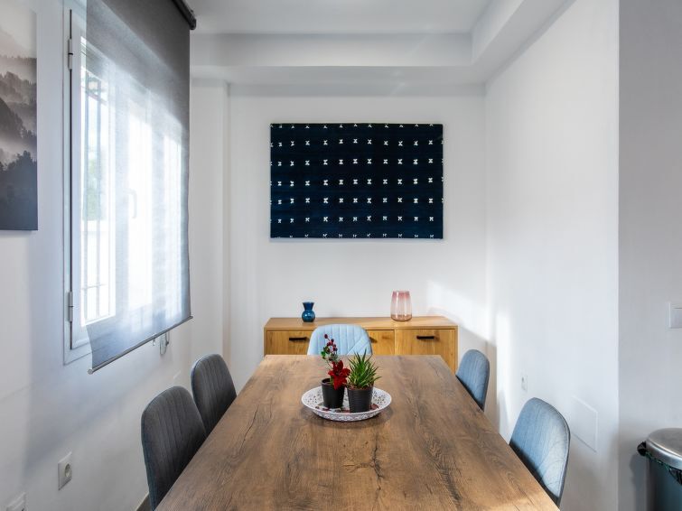 "Brisa del Mar", 4-Zimmer-Reihenhaus 93 m2 auf 2 Stockwerken. Objekt geeignet für 4 Erwachsene + 2 Kinder. Schön und gemütlich eingerichtet: Wohn-/Esszimmer mit Digital-TV, Klimaanlage und Warmluftheizung. Ausgang zur Terrasse. Offene Küche (Backofen, Geschirrspüler, 3 Induktionskochplatten, Toaster, Wasserkocher). Sep. WC. Boiler (80 Liter). Obergeschoss: 1 Zimmer mit 1 franz. Bett (1 x 150 cm, Länge 190 cm), Klimaanlage und Warmluftheizung. 1 Zimmer mit 2 Betten (90 cm, Länge 180 cm), Klimaanlage und Warmluftheizung. 1 Zimmer mit 1 x 2 Etagenbetten (1 x 80 cm, Länge 180 cm), Klimaanlage und Warmluftheizung. Dusche/WC. Grosse Terrasse. Terrassenmöbel, Gartengrill. Zur Verfügung: Waschmaschine, Bügeleisen, Haartrockner. Internet (WLAN, gratis). Bitte beachten: TV nur ES. Rauchmelder, Feuerlöscher. VUT/MA/80067 // Reg. Nr.: ESFCTU0000290330001626640000000000000000VUT/MA/800672