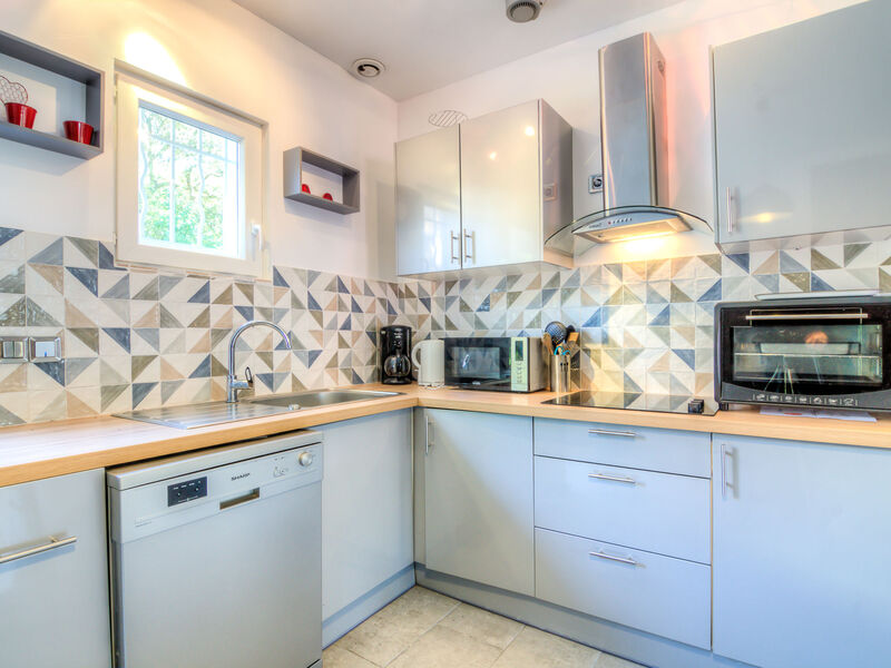 Huis 3-kamers 79 m2. Mooi ingericht: woon-/eetkamer met 1 2-pers divanbed (140 cm, lengte 190 cm), TV (Flatscreen TV). Uitgang naar het terras. 1 kamer met 1 2-pers bed (1 x 140 cm, lengte 190 cm). 1 kamer met 2 bedden (90 cm, lengte 190 cm). Open keuken (afwasmachine, 4 keramische glas kookplaten, magnetron, grill, elektrische koffiemachine). Douche, aparte WC. Elektrische verwarming. Terrasmeubelen, barbecue, ligstoelen (3). Ter beschikking: wasmachine, strijkijzer, kinderbed tot 3 jaar. Internet (Internet (WiFi), gratis). Parkeerplaats. Geschikt voor families. Niet rokers woning. Rookmelders. 40133000040TN