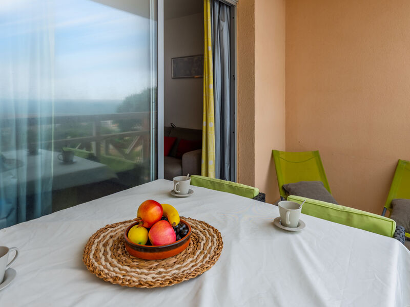 Appartement 2-kamers 24 m2 op de 2e verdieping. Comfortabel en mooi ingericht: woon-/eetkamer met 1 2-pers divanbed (1 x 140 cm, lengte 190 cm), TV (Flatscreen TV). Uitgang naar het balkon. 1 kamer met 1 2-pers bed (1 x 140 cm, lengte 190 cm). Kookhoek (2-pits kookplaat, broodrooster, waterkoker, diepvriezer, elektrische koffiemachine, pads voor de koffiemachine (SENSEO) extra, combimagnetron). Douche/WC. Elektrische verwarming. Balkon 7 m2, op het zuiden gelegen. Balkonmeubilair. Zeer mooi uitzicht op zee en het zwembad. Ter beschikking: wasmachine. Internet (WiFi, extra). Parkeerplaats nr. 241. Maximaal 1 huisdier/hond toegestaan. Rookmelders. Aanbod door een particulier volgens art. 155, IV van CGI.