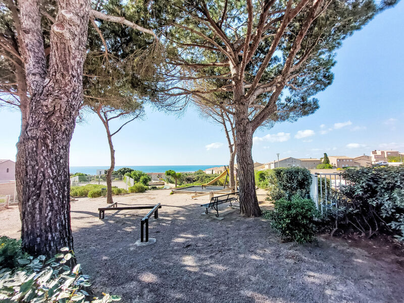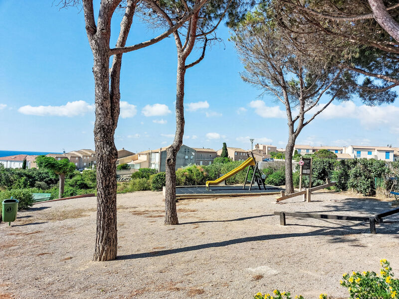 Residentie "Les Hauts d'Azur". Boven St Pierre Sur Mer, 800 m van het centrum, 900 m van zee, 800 m van het strand. Voor medegebruik: openluchtzwembad (14 x 10 m, 120 - 150 cm diepte, seizoensgebonden beschikbaarheid: 01.Jun. - 30.Sep.). Basketbal, jeu de boules, kinderspeelplaats. Winkel, levensmiddelenwinkel, restaurant 800 m, bushalte 200 m, zandstrand "St Pierre La Mer" 900 m, duikschool 2 km. Jachthaven 2 km, zeilschool 2 km. Attracties in de buurt: Cité de Carcassonne 77 km, Réserve Africaine de Sigean 37 km, Espace Balnéoludique de Gruissan 11 km.