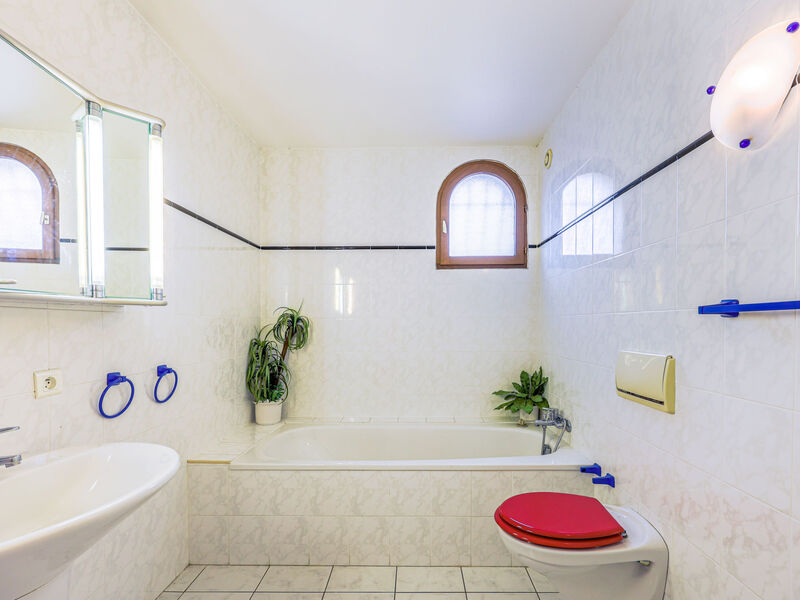 Huis 7-kamers 150 m2 op 2 verdiepingen. Doelmatig en mooi ingericht: woon-/eetkamer met TV. Uitgang naar het terras. 3 kamers, elke kamer heeft 2 bedden (90 cm). Keuken (4-pits kookplaat, oven, afwasmachine, magnetron, diepvriezer). Aparte WC, bad/douche/WC. Bovenverdieping: 1 kamer met 1 2-pers bed (140 cm). 1 kamer met 1 2-pers bed (200 cm). Bad/douche/WC. Elektrische verwarming. Groot tuin 600 m2. Terrasmeubelen. Ter beschikking: wasmachine. Internet (Internet (WiFi), extra). Parkeerplaats (2 Auto's). 1 klein huisdier/hond toegestaan. Rookmelders.