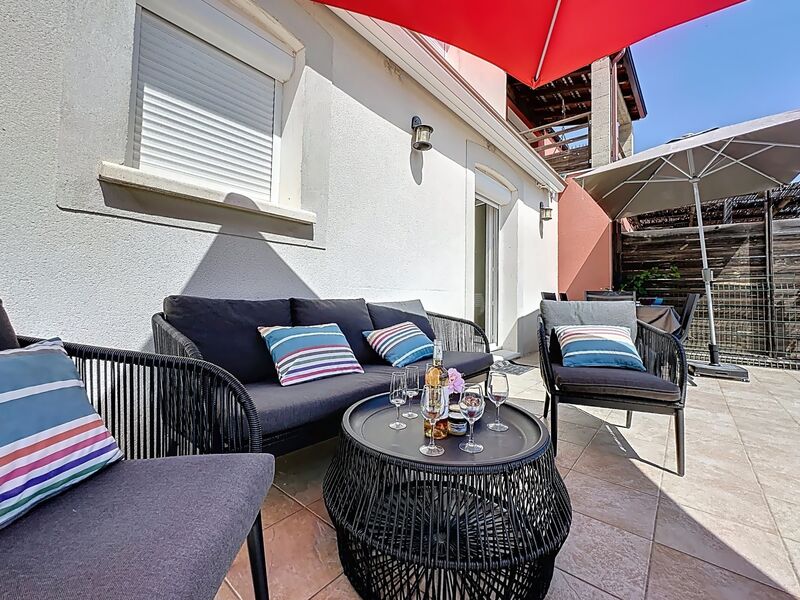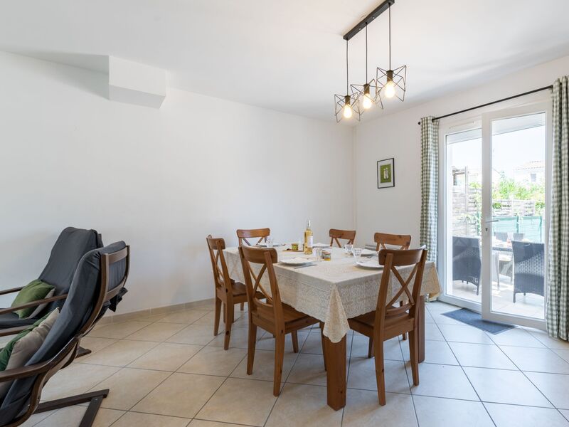 Huis in een rij 4-kamers 120 m2 op 2 verdiepingen. Het objekt is geschikt voor 4 volwassenen + 2 kinderen. Woon-/eetkamer met TV (Flatscreen TV), ventilator. Open keuken (oven, afwasmachine, 4 inductiekookplaten, magnetron, diepvriezer) met doorgeefluik. Aparte WC. Bovenverdieping: 1 kamer met 1 2-pers bed (160 cm). 1 kamer met 1 2-pers bed (140 cm). 1 kinderkamer met 2 bedden (105 cm, lengte 180 cm). Badkamer, douche, aparte WC. Terras 20 m2, op het zuiden gelegen, terras 15 m2, op het noorden gelegen. Terrasmeubelen, barbecue (verrijdbaar). Ter beschikking: wasmachine. Internet (WiFi, gratis). Parkeerplaats bij het huis. EA7QEK