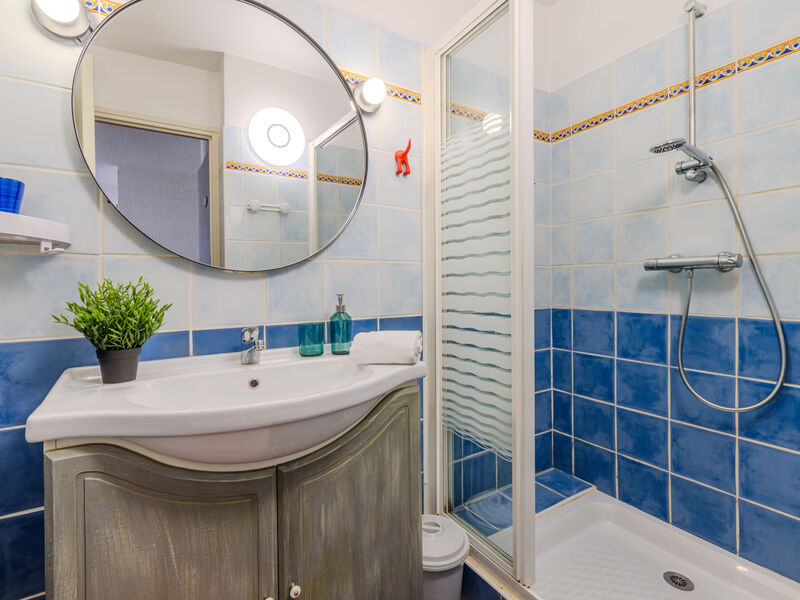 Appartement 2-kamers 60 m2, op de begane grond. Gezellig ingericht: woon-/eetkamer met 1 x 2 stapelbedden (90 cm, lengte 190 cm), TV (Flatscreen TV). Uitgang naar het terras. 1 groot kamer met 1 2-pers bed (160 cm, lengte 190 cm). Uitgang naar het terras. Open keuken (4 kookpitten (vlammen), broodrooster, waterkoker, magnetron, diepvriezer, grill, elektrische koffiemachine) met eettafel. Douche, aparte WC. Elektrische verwarming, air-conditioning. Groot terras 60 m2, op het zuiden gelegen. Terrasmeubelen, ligstoelen (2). Ter beschikking: wasmachine. Internet (Internet (WiFi), gratis). Parkeerplaats (omheind, 1 Auto). Maximaal 1 klein huisdier/hond toegestaan. Rookmelders. Aanbod door een particulier volgens art. 155, IV van CGI.