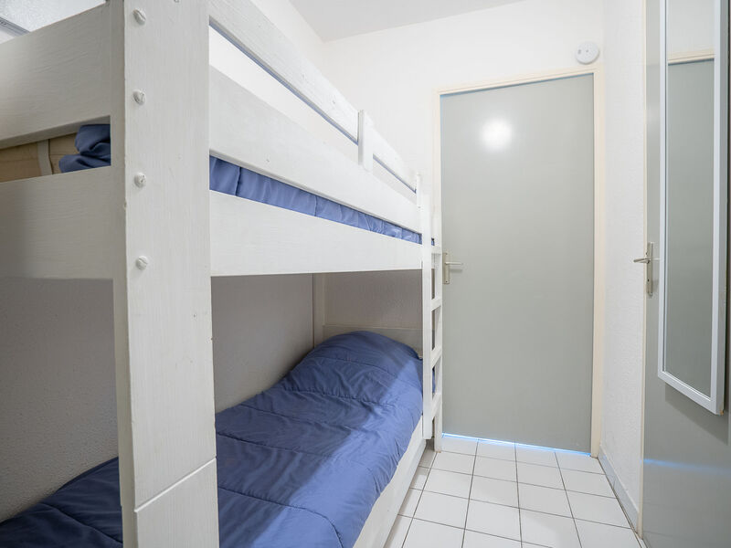 Studio 1-kamer 20 m2 op de 1e verdieping. Woon-/eetkamer met 1 2-pers divanbed (140 cm, lengte 200 cm), TV en DVD. Hal met 1 x 2 stapelbedden (70 cm, lengte 180 cm). Kookhoek (mini-oven, 2 keramische glas kookplaten, magnetron, diepvriezer). Douche, aparte WC. Elektrische verwarming. Terras 6 m2, overdekt, op het oosten gelegen. Terrasmeubelen. Ter beschikking: Internet (Internet (WiFi), gratis). Parkeerplaats. Rookmelders.