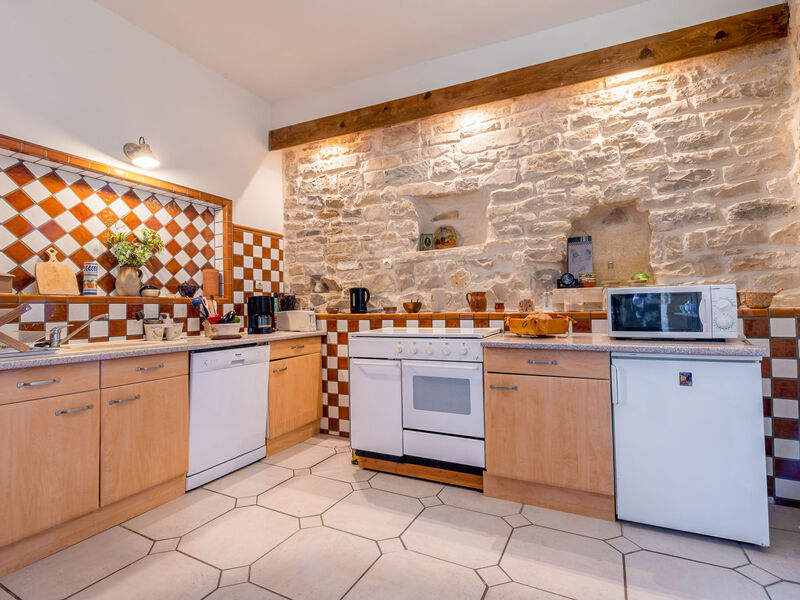 Appartement 2-kamers 110 m2 op de 1e verdieping. Ruim, stijlvol ingericht: open eetkamer. Woon-/slaapkamer met 1 bed (120 cm, lengte 190 cm), 1 2-pers divanbed (140 cm, lengte 190 cm), TV (Flatscreen TV), stereo-installatie. 1 kamer met 1 2-pers bed (140 cm, lengte 190 cm), TV en Flatscreen TV. Keuken (4-pits kookplaat, oven, afwasmachine, broodrooster, waterkoker, magnetron, elektrische koffiemachine). Uitgang naar het terras. Douche/WC. Verwarming. Terras 15 m2, op het noordoosten gelegen. Terrasmeubelen, barbecue. Ter beschikking: Internet(WiFi), gratis). Rookmelders. Stenen en zichtbare balken. Gedeeltelijk oude meubelen.