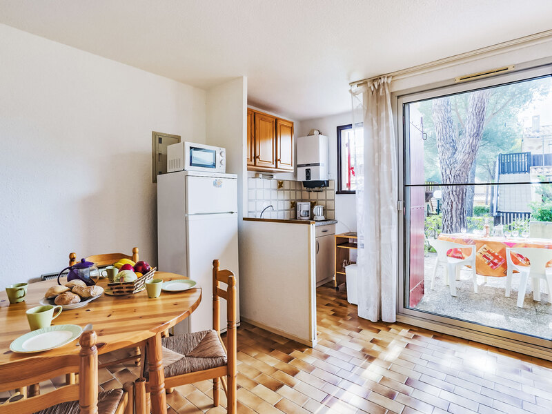 Residentie "Le Centaure". In de wijk la Pinède, Proche Quartier Naturistes, 2 km van het centrum, 2.2 km van zee, 2.2 km van het strand. Winkel 1 km, levensmiddelenwinkel 1 km, restaurant 1 km, bar 1 km, bushalte "Maraval" 500 m, zandstrand "La Roquille" 2.2 km, openluchtzwembad 6.9 km. Jachthaven 2.4 km, golfterrein (27 holes) 3 km, tennis 1.1 km, manege 1.8 km. Attracties in de buurt: Casino 1.7 km, Grande Roue 2.3 km, Musée de l'Ephèbe 2.3 km, Aqualand 3.3 km, Ile des Loisirs 3.4 km.