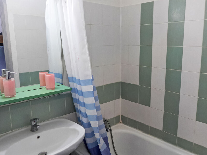 Appartement 1-kamer 20 m2 op de 2e verdieping. Woon-/eetkamer met 1 divanbed (140 cm, lengte 190 cm), TV. Uitgang naar de loggia. Hal met 1 x 2 stapelbedden (70 cm). (mini-oven, 2 keramische glas kookplaten, magnetron, elektrische koffiemachine). Bad/WC. Elektrische verwarming. Terras 6 m2. Uitzicht op de bergen. Ter beschikking: Internet (Internet (WiFi), extra). Rookmelders.