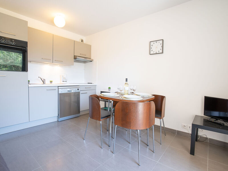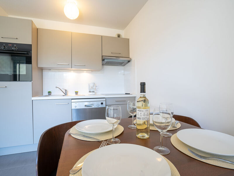 Appartement 2-kamers 33 m2 op de 2e verdieping. Woon-/eetkamer met 1 2-pers divanbed (130 cm, lengte 190 cm), TV (Flatscreen TV). Uitgang naar het terras. 1 kamer met 1 2-pers bed (140 cm, lengte 200 cm). Kookhoek (oven, afwasmachine, 4 keramische glas kookplaten, magnetron, diepvriezer, elektrische koffiemachine). Douche/WC. Air-conditioning. Terras 10 m2, overdekt. Terrasmeubelen. Mooi uitzicht op Golfbaan. Ter beschikking: wasmachine. Internet (WiFi, extra). Parkeerplaats. Rookmelders. GOLF CLAIR- FR6665.815.15