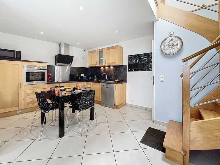 Rijtjeshuis "L'écume", van 2 verdiepingen. In het centrum van Pornic, centrale ligging, in het centrum van de stad, 200 m van zee, 1 km van het strand. Parkeerplaats. Winkel, supermarkt, restaurant, bakkerij, café 200 m, centrum te voet bereikbaar in 2 minuten, bushalte "Gare de Pornic" 200 m, treinstation "Pornic" 200 m, zandstrand "La Source" 1 km, rotsstrand "L'Anse aux Lapins" 850 m (klein), thermaalbad "Alliance Pornic Thalasso & Spa" 1 km. Jachthaven 200 m, jachthaven 1.2 km, golfterrein (18 holes) 3 km, zeilschool 1.7 km, midgetgolf 3 km. Attracties in de buurt: Faïencerie de Pornic 1.2 km, Pornic Aventure Accrobranche 2 km, Biscuiterie Galettes Saint Michel 10 km, Legendia Parc 22 km, Les Machines de l'Ile de Nantes 47 km, Ile de Noirmoutier 58 km. Bekende meren kunnen gemakkelijk worden bereikt: Lac de Saint Viaud 25 km. Wandelgebied Sentier des Douaniers 300 m.