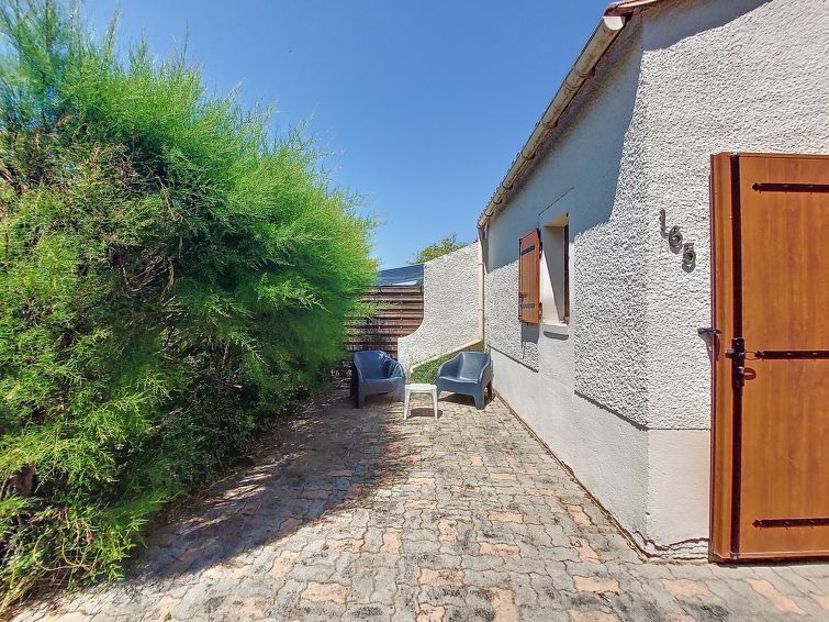 Huis in een rij 2-kamers 35 m2 op 2 verdiepingen. Woon-/eetkamer met TV (Flatscreen TV). 1 kamer met 2 bedden (80 cm, lengte 190 cm). Kookhoek (2-pits kookplaat, mini-oven, waterkoker, magnetron, elektrische koffiemachine). Bad/WC. Geen verwarmingsmogelijkheid. Bovenverdieping: galerij met 1 2-pers bed (1 x 140 cm, lengte 190 cm). Terras 35 m2, op het zuiden gelegen. Terrasmeubelen. Ter beschikking: Internet (Internet (WiFi), extra). Parkeerplaats nr. 165. Woning aan de straatzijde. Maximaal 1 huisdier/hond toegestaan. Rookmelders. In plaats van een afgesloten slaapkamer bevinden sommige slaapgedeeltes zich in een open ruimte (galerij, nis, etc.).