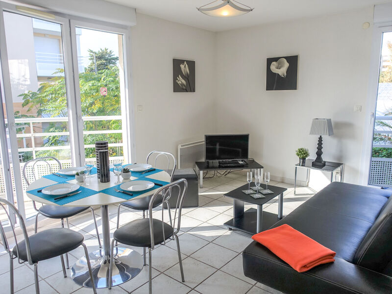 Appartement 2-kamers 45 m2 op de 1e verdieping. Licht, doelmatig ingericht: woon-/eetkamer met 1 2-pers divanbed (140 cm, lengte 190 cm), TV en DVD. Uitgang naar het terras. 1 kamer met 2 bedden (90 cm). Uitgang naar het balkon. Keuken (oven, afwasmachine, 4 keramische glas kookplaten, broodrooster, waterkoker, magnetron, elektrische koffiemachine). Badkamer, aparte WC. Elektrische verwarming. Terras 8 m2, op het westen gelegen. Terrasmeubelen. Ter beschikking: wasmachine. Internet (Internet (WiFi), extra). Parkeerplaats nr. 22 (overdekt, 1 Auto). Niet rokers woning. 06027016412HT