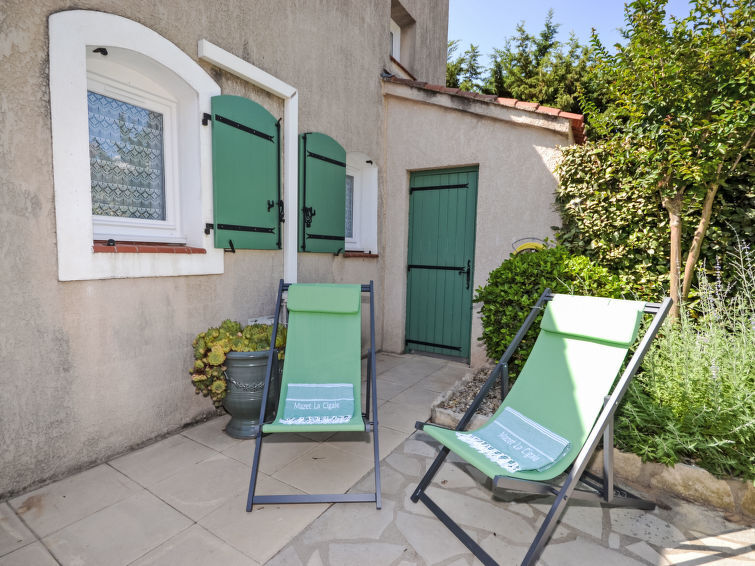 "Val d'Alpilles", huis in een rij 3-kamers 40 m2 op 2 verdiepingen. Doelmatig en mooi ingericht: woon-/eetkamer met eettafel, TV, elektrische verwarming en air-conditioning. Uitgang naar het terras, naar de zitplaats in de tuin. 1 kleine kamer met 1 2-pers bed (1 x 140 cm, lengte 200 cm). Kookhoek (mini-oven, oven, afwasmachine, 2 keramische glas kookplaten, broodrooster, waterkoker, diepvriezer, elektrische koffiemachine). Douche/WC. Elektrische verwarming. Bovenverdieping: 1 open kamer met afgeschuinde daken met gordijn met 2 bedden (90 cm, lengte 200 cm), TV en Flatscreen TV. Terras 15 m2. Terrasmeubelen, elektrische barbecue. Ter beschikking: wasmachine. Internet (Internet (WiFi), gratis). Parkeerplaats nr. 103 (1 Auto) op 50 m. Rookvrij huis. Rookmelders. Aanbod door een particulier volgens art. 155, IV van CGI. 130580000869P