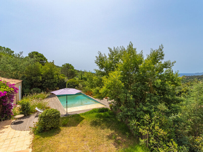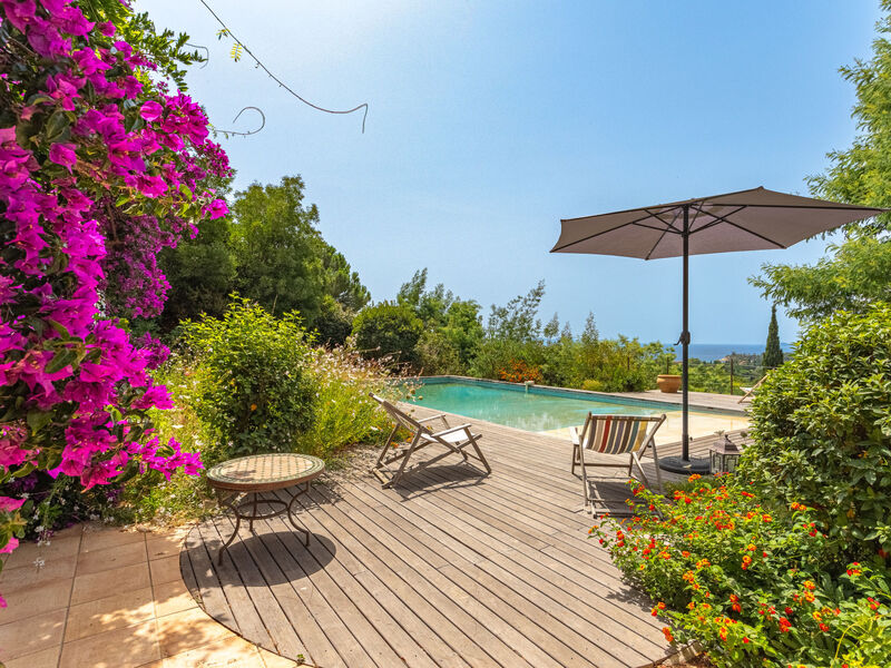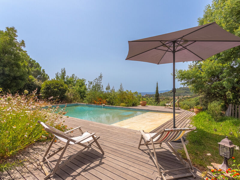 Cavalière 8 km van Le Lavandou: Groot villa "Villa du Temple", van 2 verdiepingen. Huurobject bestaande uit hoofd-/ bijgebouw, rustige ligging tegen een helling, 1 km van zee, 1 km van het strand, op het zuidwesten. Voor alleengebruik: wilde tuin, openluchtzwembad hoekig (80 - 180 cm diepte, seizoensgebonden beschikbaarheid: 15.Mei. - 15.Okt.) met alarminstallatie. Onderhoud zwembad door de eigenaar/tuinman. Trappenweg (40 treden) naar het huis. Parkeerplaats (voor 2 auto's). Levensmiddelenwinkel 1 km, restaurant 800 m, bushalte "Mairie de Cavalière" 1.3 km, zandstrand "Cavalière" 1 km. Attracties in de buurt: Saint Tropez 35 km, Magic World 32 km, Parc Olbius Riquier 30 km, Le Jardin des Méditerranées 8 km. Wandelgebied Sentiers du Littoral. Auto noodzakelijk. De sleuteloverdracht vindt plaats bij het agentschap Interhome in Le Lavandou, 8 km.