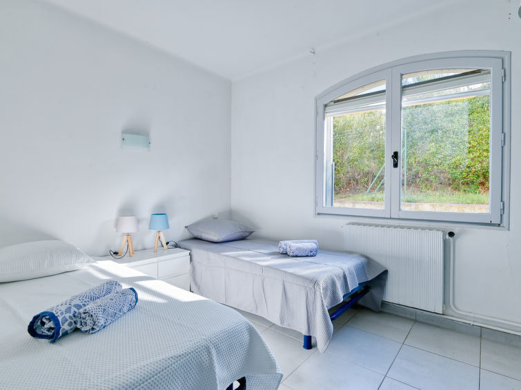 "La Maison de l'Amiral", huis 5-kamers 130 m2. Comfortabel ingericht: groot woon-/eetkamer met open haard, eettafel en TV (Flatscreen TV). 1 kamer met 1 2-pers bed (160 cm, lengte 190 cm). 2 kamers, elke kamer heeft 2 bedden (90 cm, lengte 190 cm). Keuken (oven, afwasmachine, 4 inductiekookplaten, broodrooster, waterkoker, elektrische koffiemachine). Bad/WC, douche, aparte WC. Olie-verwarming, air-conditioning. Terras. Terrasmeubelen, barbecue, ligstoelen (6). Uitzicht op zee. Ter beschikking: wasmachine, kinderbed tot 2 jaar. Internet (Internet (WiFi), gratis). Rookvrij huis. Maximaal 1 huisdier/hond toegestaan. Rookmelders. 83123000807Z2