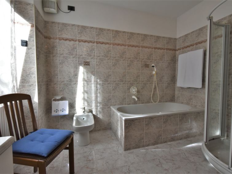 Appartement 3-kamers 90 m2 op de 1e verdieping. Ruim, doelmatig en comfortabel ingericht: woon-/eetkamer met zwedenkachel (alleen decoratie), eettafel en TV. Uitgang naar de tuin. 1 groot 2-pers. kamer. 1 kamer met 2 bedden. Keuken (1 kookplaat, oven, 3 kookpitten (vlammen), broodrooster, waterkoker, magnetron) met eettafel. Bad/douche/bidet/WC. Verwarming. Parketvloeren. Tuin. Terrasmeubelen, barbecue, ligstoelen (4). Uitzicht op de bergen en de tuin. Ter beschikking: wasmachine, haardroger. Internet (Internet (WiFi), gratis). Rookvrij huis. Privé ingang. IT014072C2SY265NGM