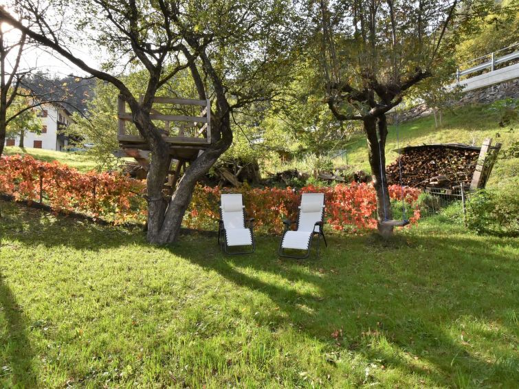 Klein, comfortabel appartementencomplex "Casa Le Fontane", 1.260 m boven zeeniveau, van 2 verdiepingen. In het gehucht Fontane, 7 km van het centrum van Bormio, 42 km van het centrum van Livigno, rustige ligging, 6 km van het skigebied. Voor alleengebruik: tuin op verschillende niveaus, 100 m2 (niet omheind) met gazon en bomen. Tuinmeubelen, barbecue. In het huis: bergruimte voor fietsen, berging voor ski's, centrale verwarming. In de winter sneeuwkettingen aanbevolen. Trappenweg (13 treden) naar het huis. Parkeerplaats (voor 2 auto's) bij het huis, openbare parkeerplaatsen in de straat. Levensmiddelenwinkel 1.5 km, supermarkt 1.5 km, restaurant 1.5 km, bar 1.5 km, thermaalbad "Terme di Bormio" 7 km. Auto noodzakelijk.